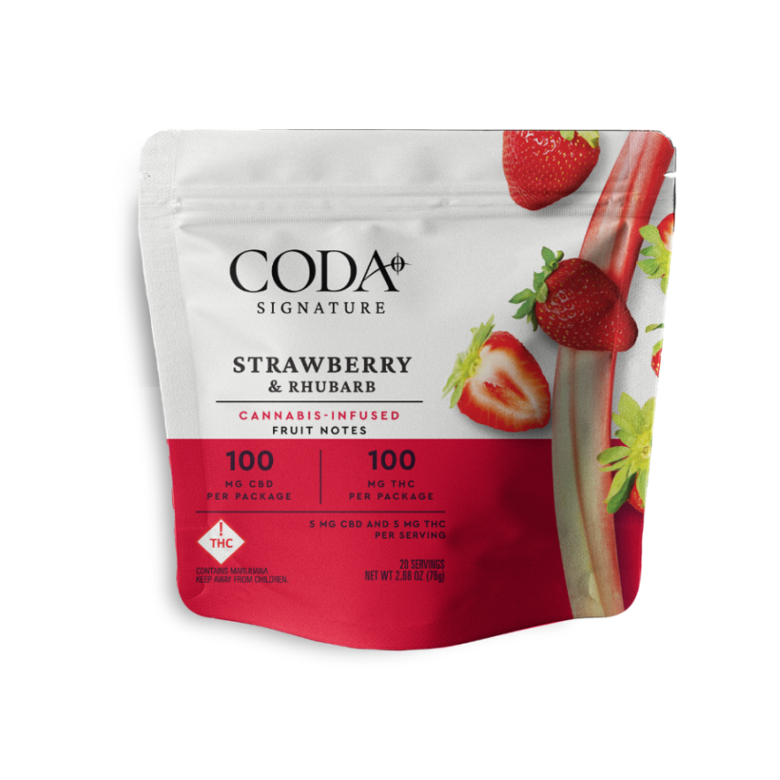 Coda | Fruit Note Gummies | 100MG CBD 100MG THC | Strawberry Rhubarb