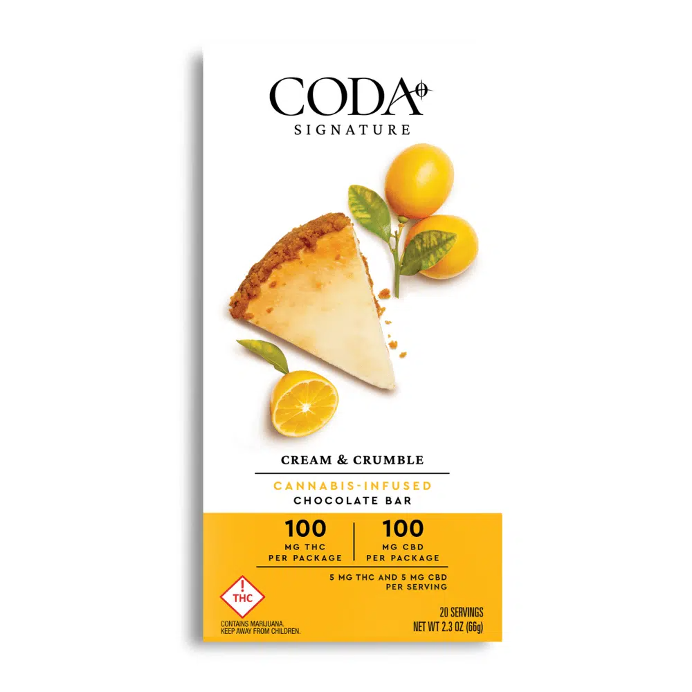 Cream & Crumble (H) - (1:1 THC:CBD) - 100mg Chocolate Bar - Coda