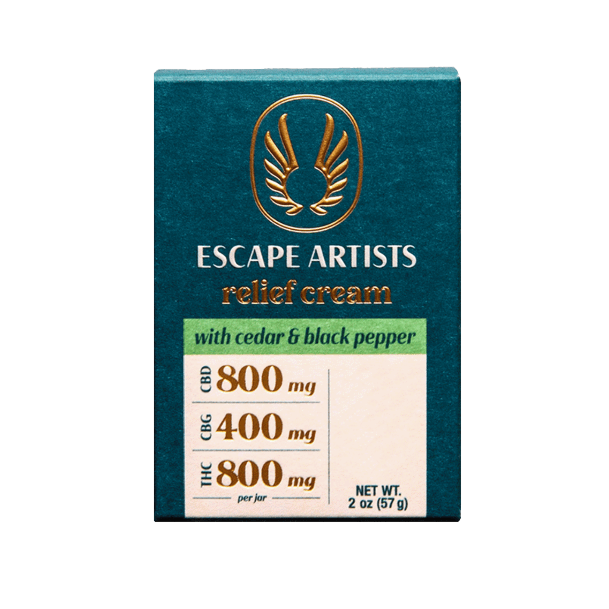 Escape Artists - Relief Cream 2oz - (800:400:800mg CBD:CBG:THC) - Cedar & Black Pepper