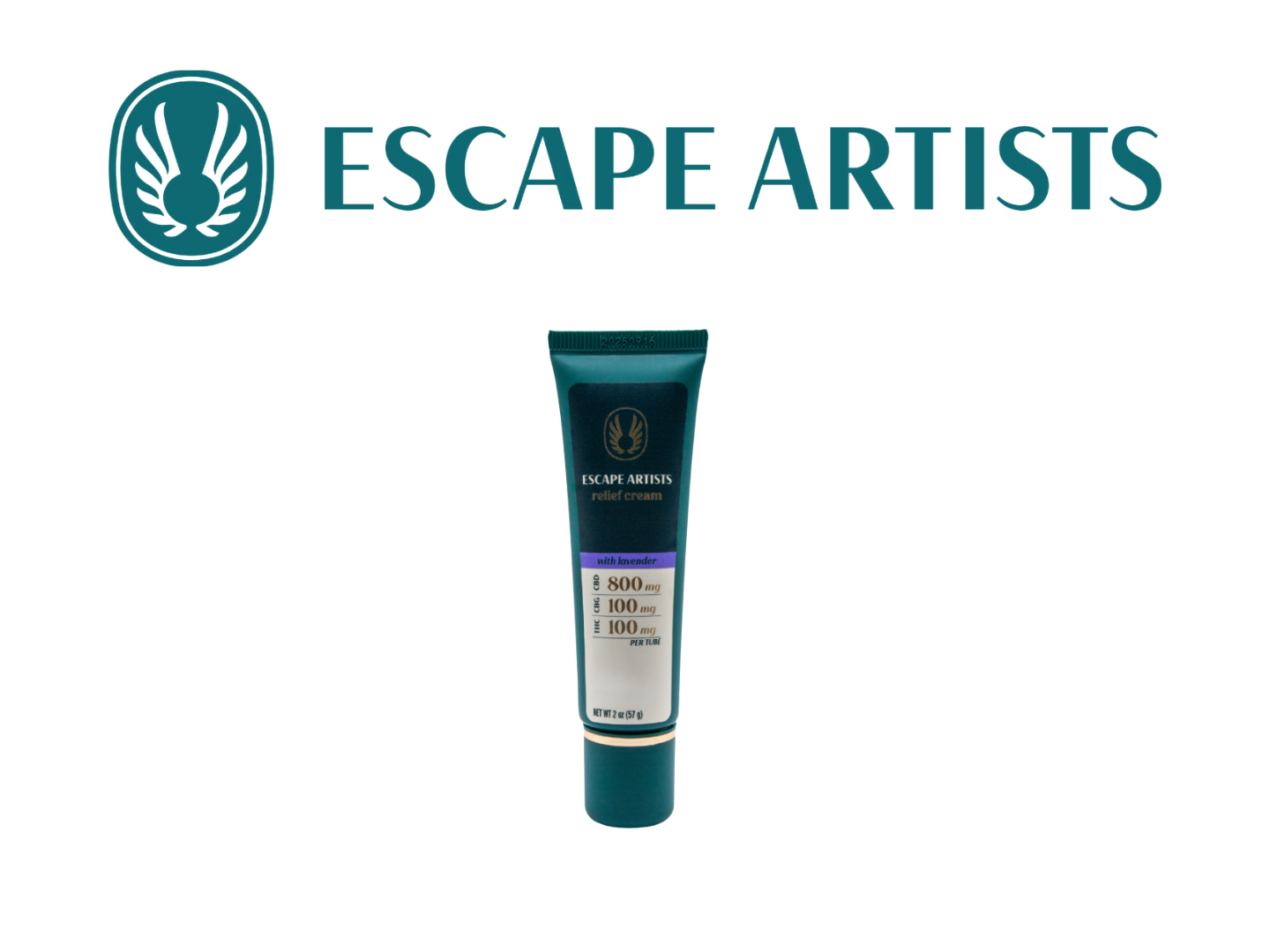 Escape Artists | Relief Cream 2.0oz | 800mg CBD: 100mg CBG: 100mg THC | Lavender