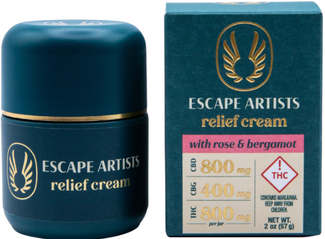 Escape Artist Relief Cream 2.0oz | 800mg CBD - 100mg CBG - 100mg THC - Menthol