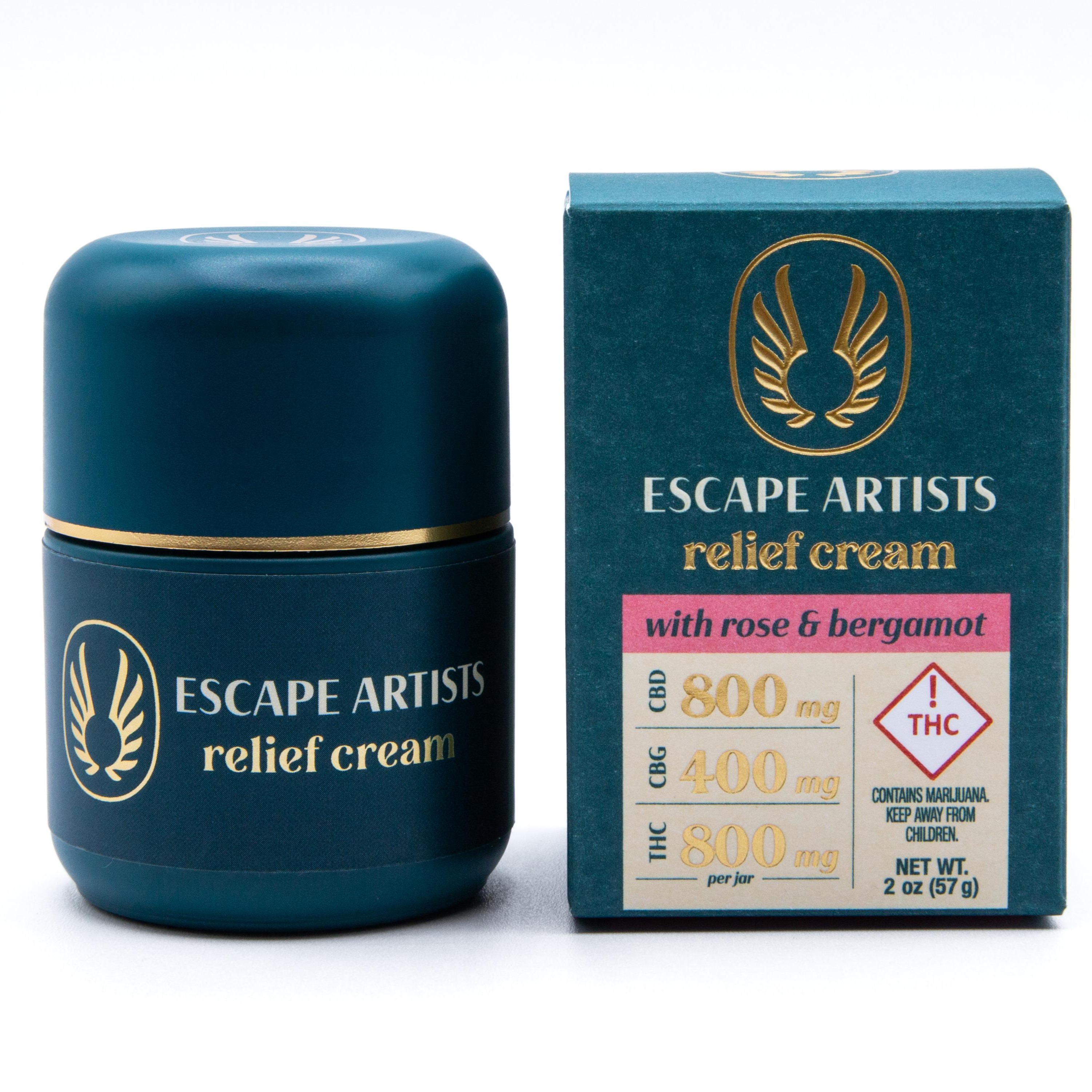 Escape Artists | Relief Cream 2.0oz | 800mg CBD: 400mg CBG 800mg THC | 2:1:2 | Rose & Bergamot