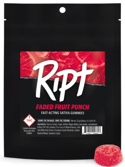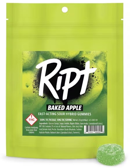 A few products consistently show up across the most locations. Ripple | 100mg | Revive | Hybrid (9 stores), Ript Gummies: Baked Apple (H) (7 stores), and Ript Gummies: Faded Fruit Punch (S) (7 stores).