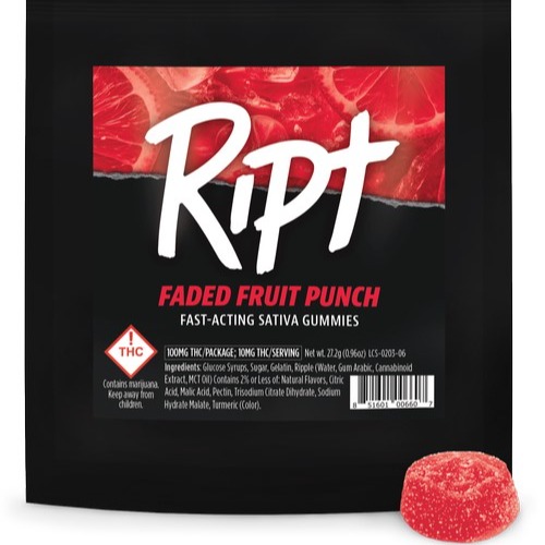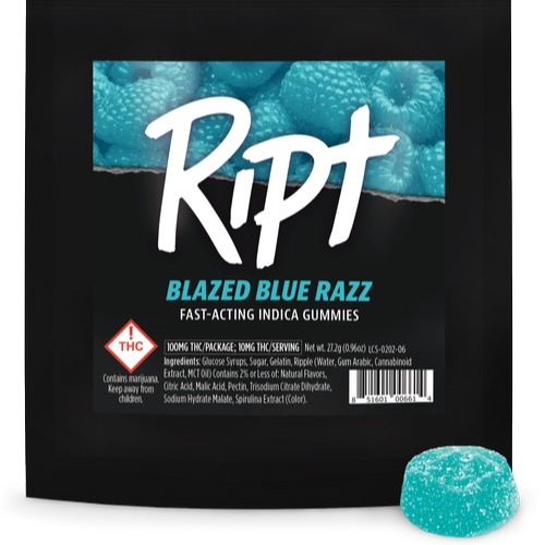 A few products consistently show up across the most locations. Ript - Gummies - Faded Fruit Punch 100mg (S) (4 stores), Ript - Gummies - Blazed Blue Razz 100mg (I) (4 stores), and Ript Faded Fruit Punch Sativa Gummies 100mg (4 stores).